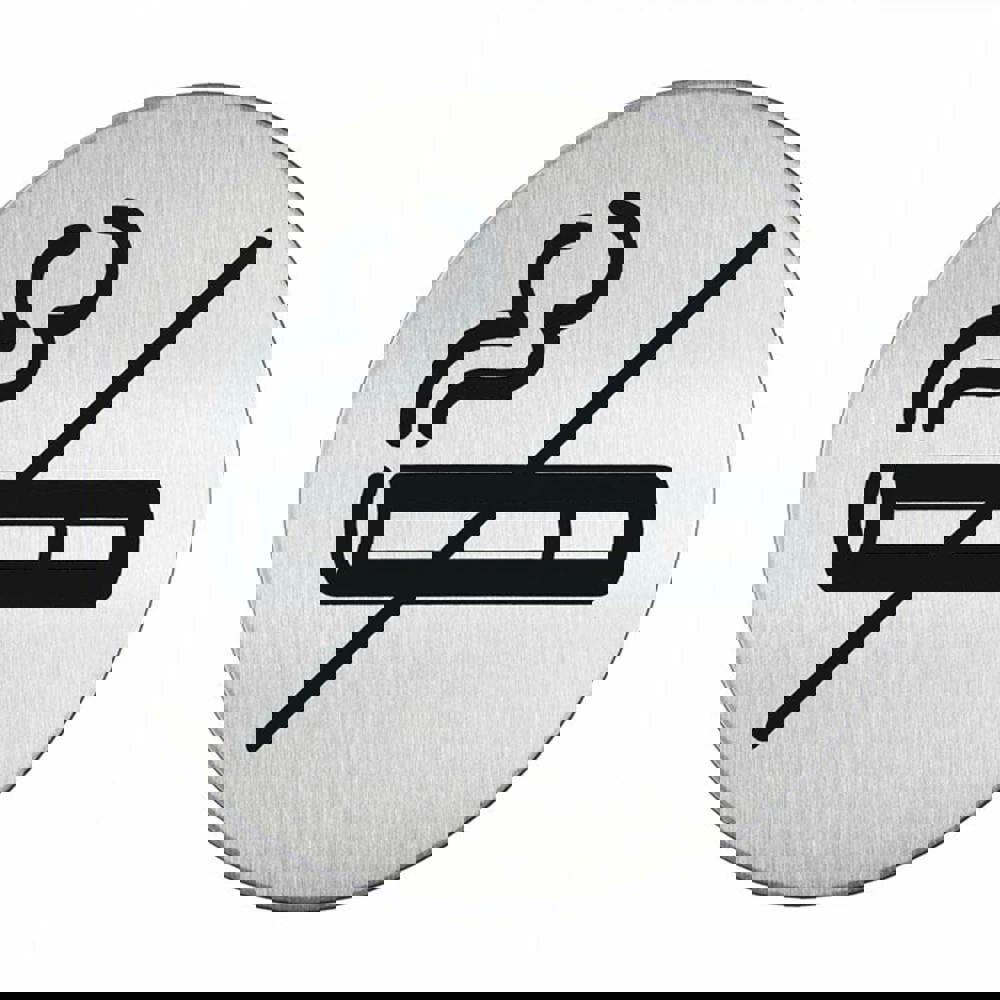 Durable Adhesive No Smoking Sign Safety Symbol | Brushed Stainless Steel | 83mm