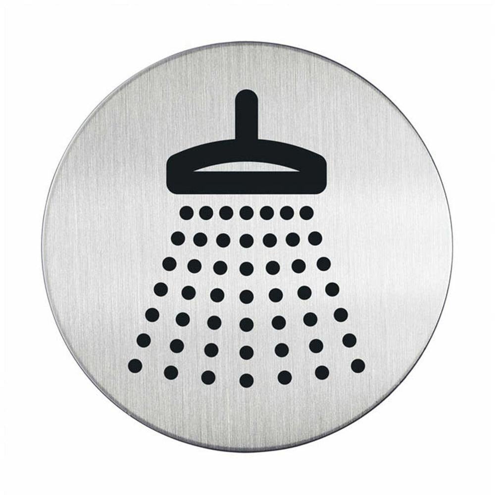 Durable Adhesive Shower Sign Safety Symbol | Brushed Stainless Steel | 83mm