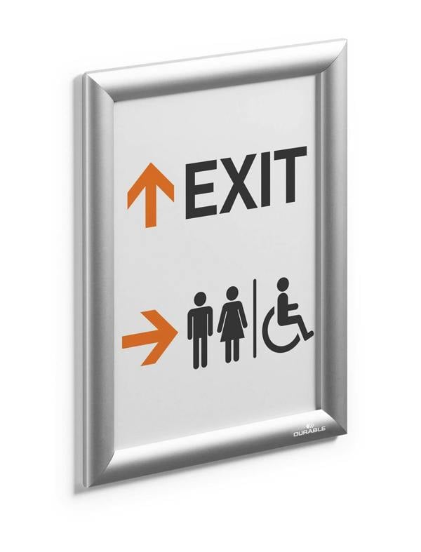 Robust anodised aluminium snap frames provide a premium signage solution. The folding frame enables quick and easy exchange of documents for fast changing signage.