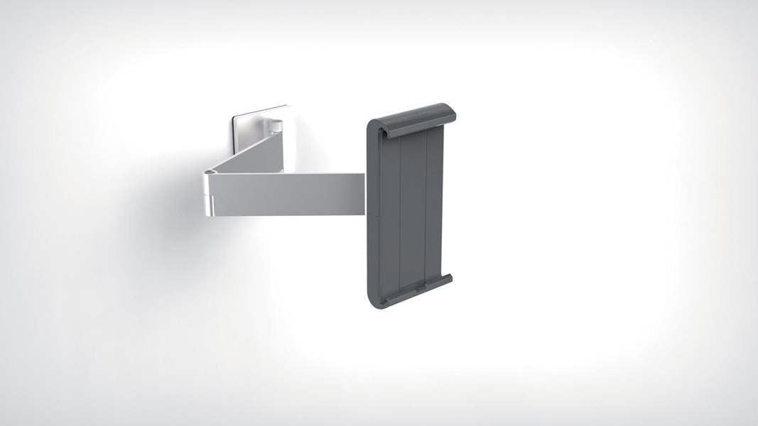 A modern and stylish wall mounted tablet holder in Silver which is perfect for any environment. The tablet holder securely holds tablets from 7" to 13" and includes an anti-theft system to prevent unauthorised removal of the tablet. The clamp securely holds the tablet in place and is rotatable 360° for use in both portrait and landscape format.