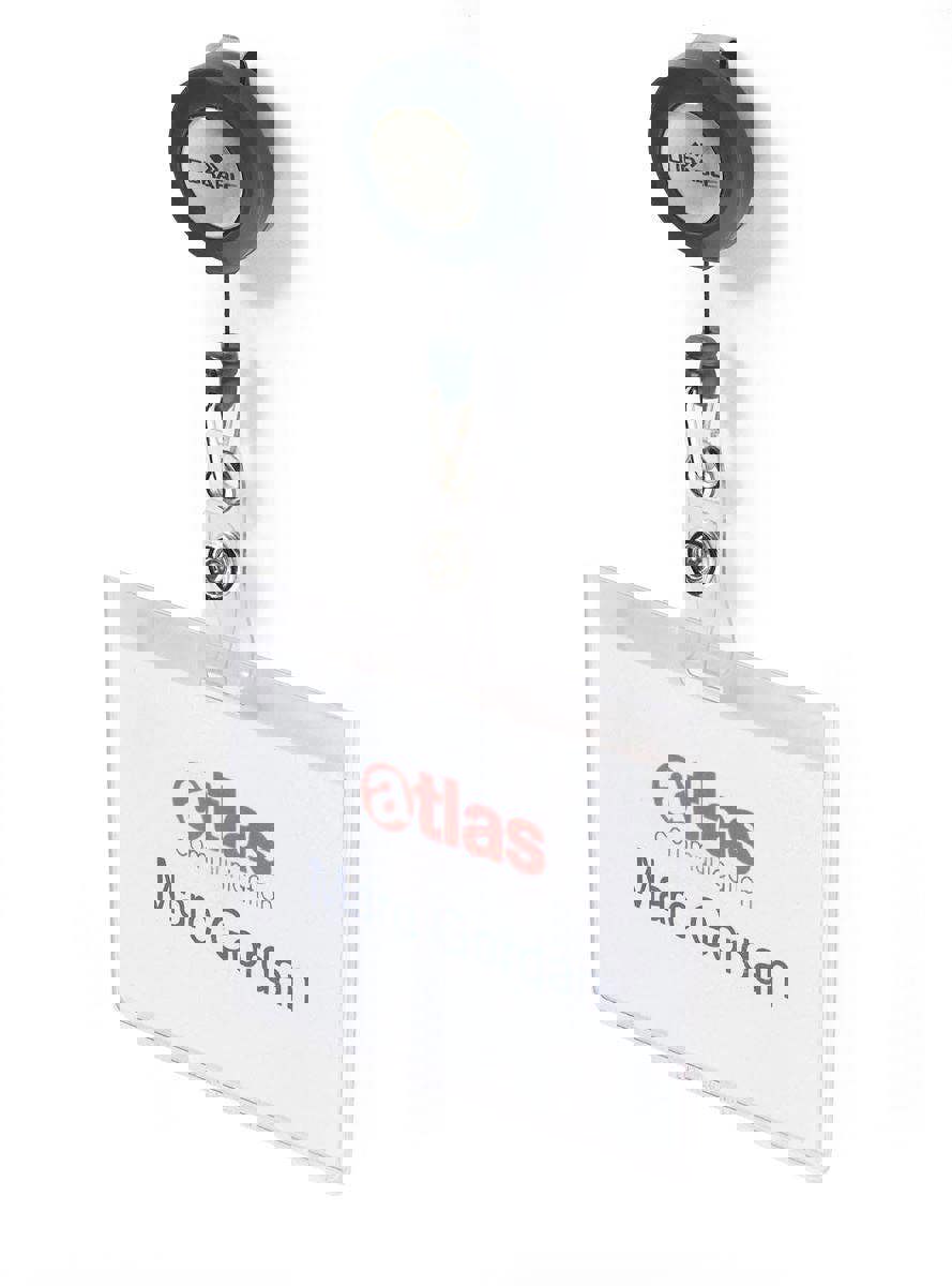 Crystal clear transparent name badges made of premium anti-tear plastics for increased durability. The smooth operating badge reel is built to last and features a sturdy metal clip for easy clothing attachment.