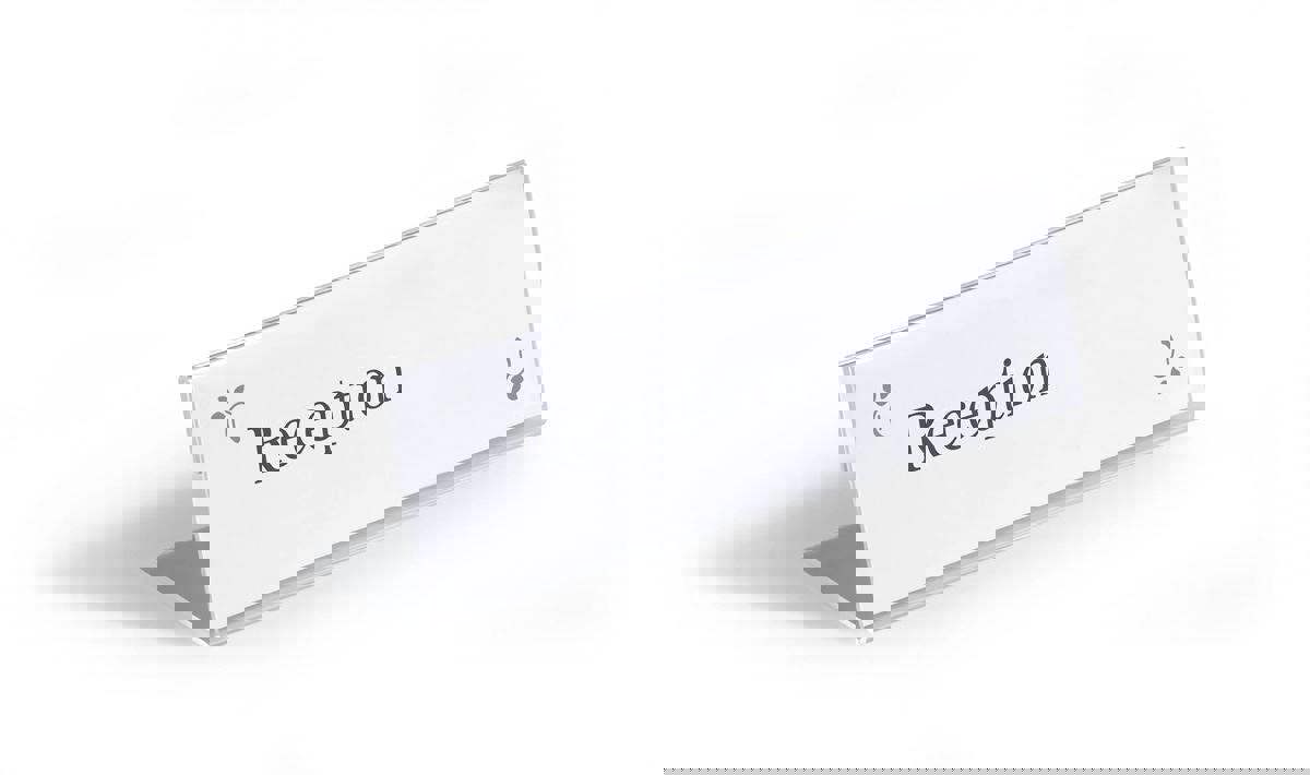 German designed table place name holders in robust crystal clear acrylic. Information can be read from both sides making them ideal for conferences, seminars and receptions. Comes with our free online name badge design software DURAPRINT with database functionality, saving you both time and money.