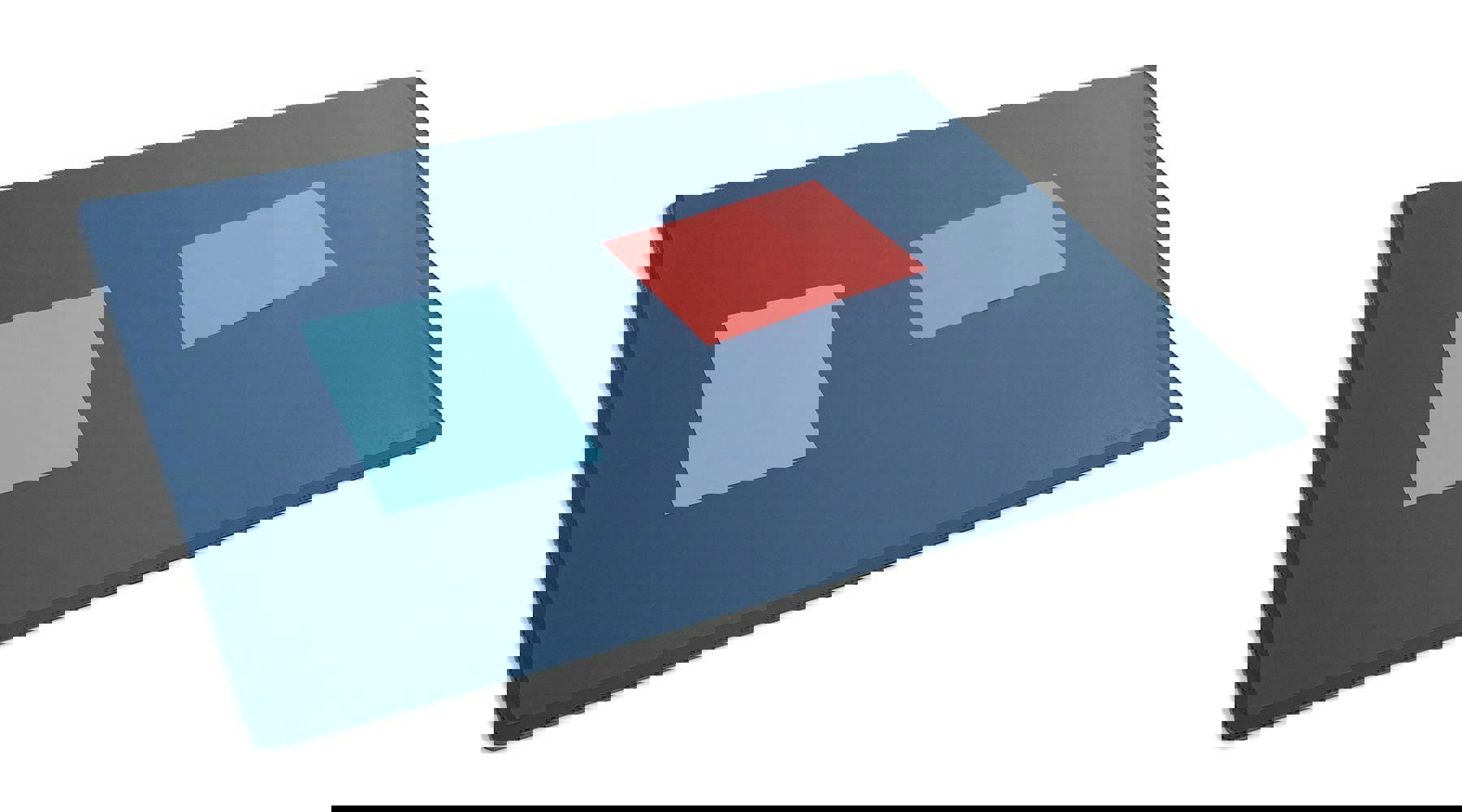 Modern versatile desk mat with a unique transparent cover which can be lifted to securely store small notes and documents whilst keeping them visible and close to hand.