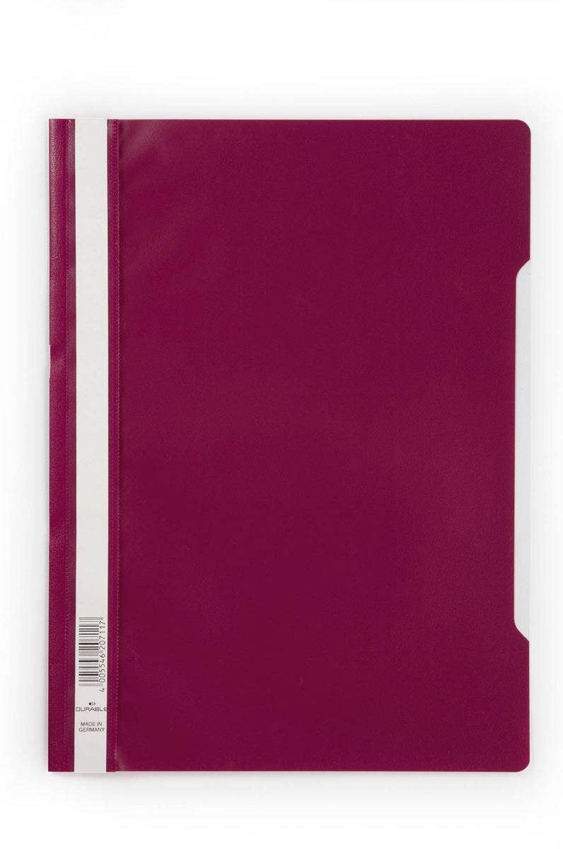 Durables original Clear View folder made from copy safe anti-glare polypropylene. The folder features a transparent front cover, and full length label holder for organisation. The rear cover is recessed for easier page turning and includes a 8cm filing bar for punched paper.