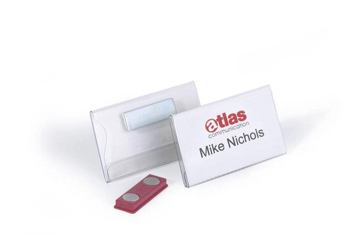 Crystal clear transparent name badges made of premium anti-tear plastics for increased durability. They feature a simple and secure magnetic fastening that will not damage clothes, even delicate fabrics.