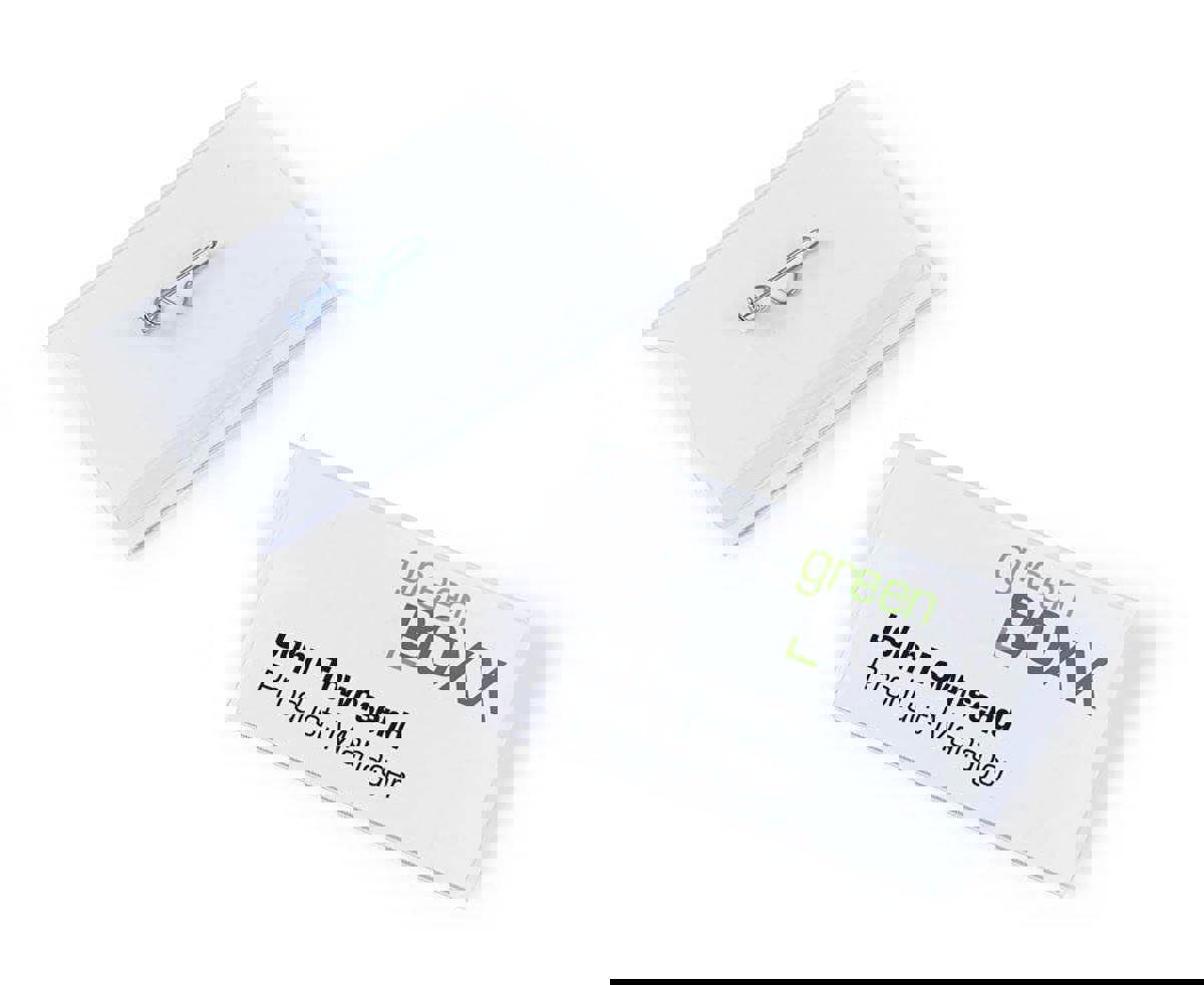 Crystal clear transparent name badges made of premium anti-tear plastics for increased durability. Our name badges feature a curved metal pin with shielded tip to avoid injury and ensure a secure hold on clothing.