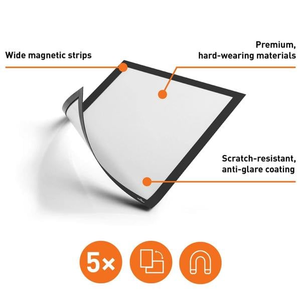 The original fold-back frame. DURAFRAME MAGNETIC is the ideal solution for displaying documents and notices on metal surfaces. The inserts can be quickly exchanged simply by lifting the magnetic frame away from the surface.