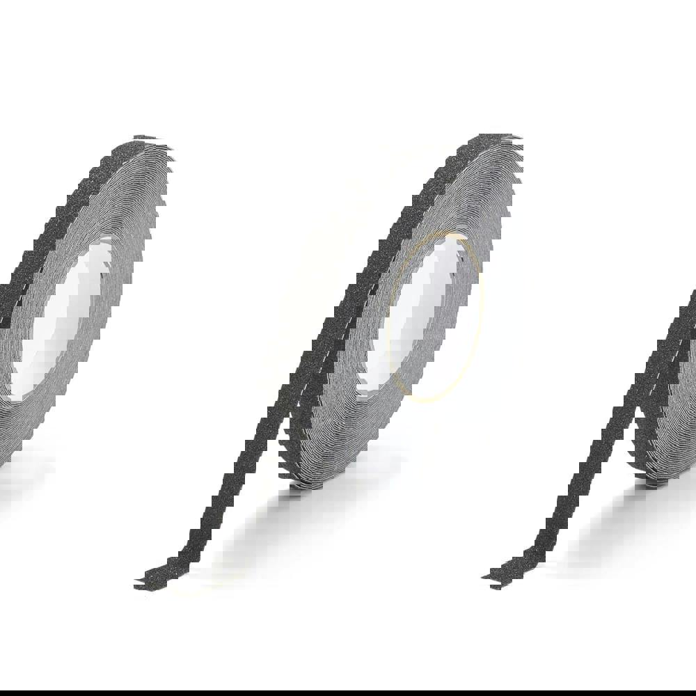 Strong durable anti-slip tape in black for improved safety in covered outdoor areas. The aluminium tape is perfect for steps, ramps, industrial floors and treads on machines and vehicles.