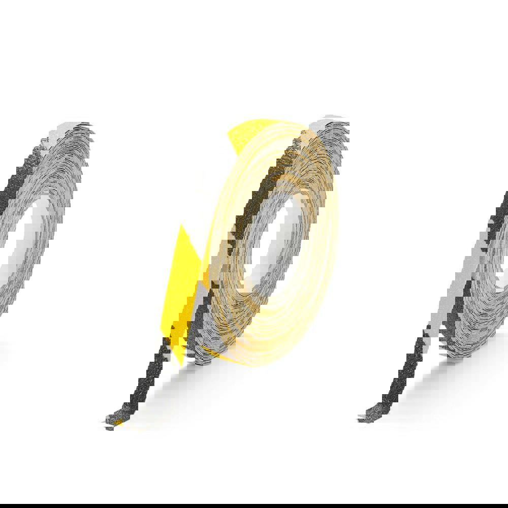 Coarse and durable anti-slip hazard tape in yellow/black for improved safety in indoor and covered outdoor industrial areas. The aluminium tape is perfect for steps, ramps, industrial floors and treads on machines and vehicles.