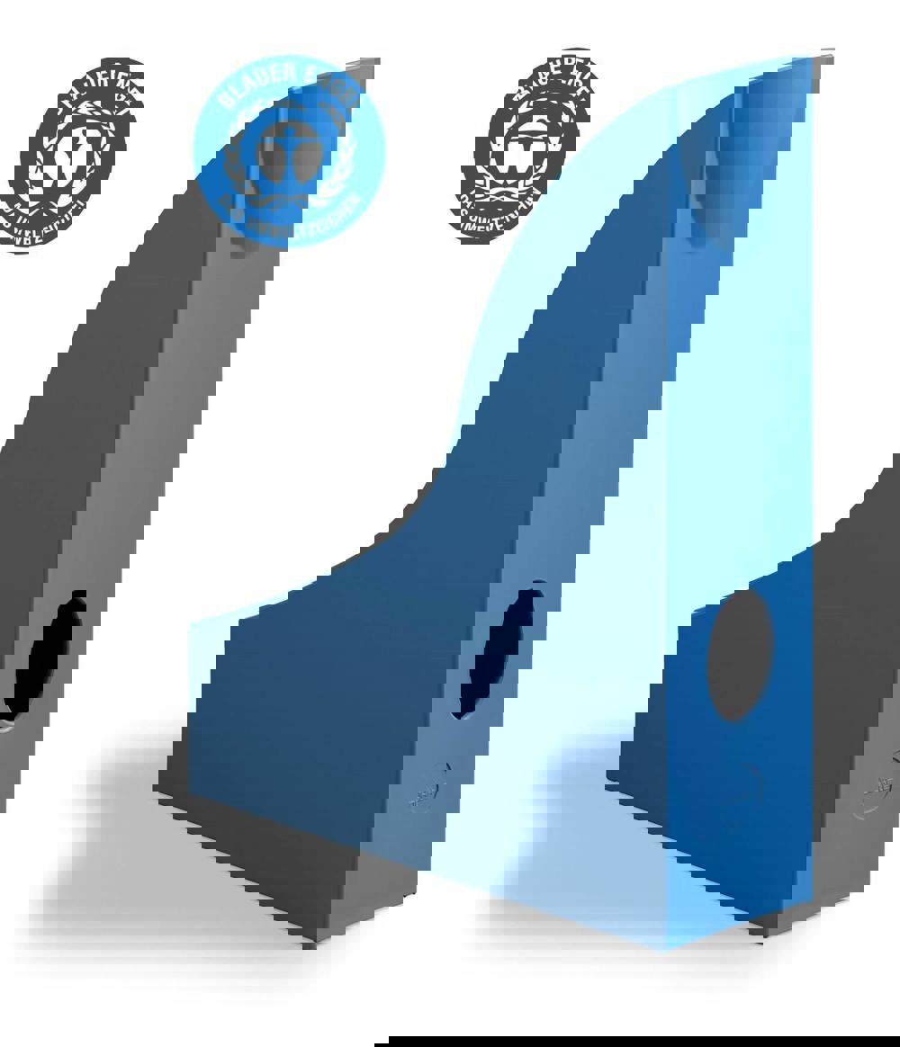 The Durable ECO Magazine Rack in blue combines ergonomic German design with sustainability to deliver a sleek and practical desktop organiser. Crafted from 80% recycled plastic and certified with the Blue Angel ecolabel, this rack is 100% recyclable, making it an excellent choice for environmentally conscious users.