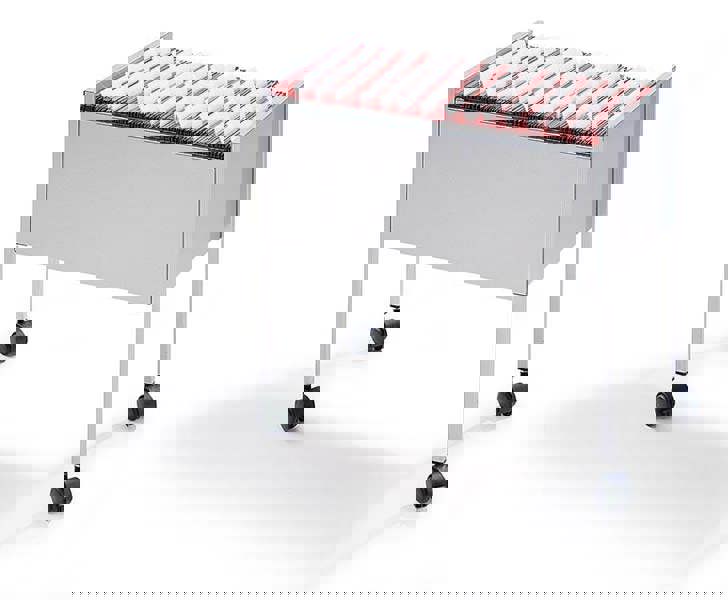 Introducing Durable’s suspension file trolley ECO designed for efficiency and mobility. With a capacity for 80 A4 suspension files, it's made of durable, scratch-resistant epoxy polyester coated steel. Equipped with four castors, including two with brakes, it offers smooth and stable manoeuvrability for effortless file transportation in any workspace.