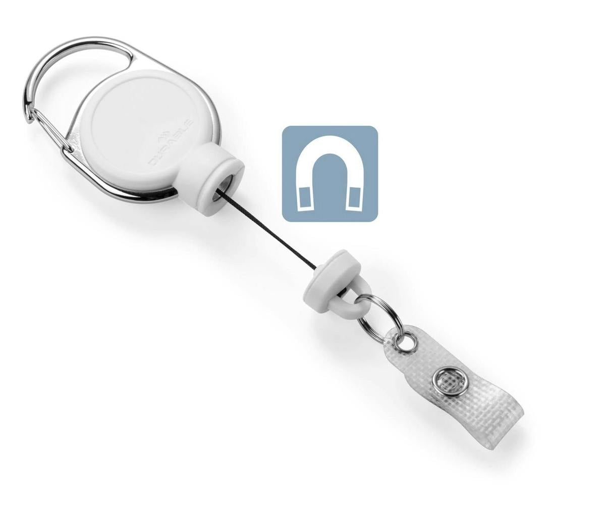 Durable Extra Strong Retractable Clip Badge Reels for ID & Keys | White