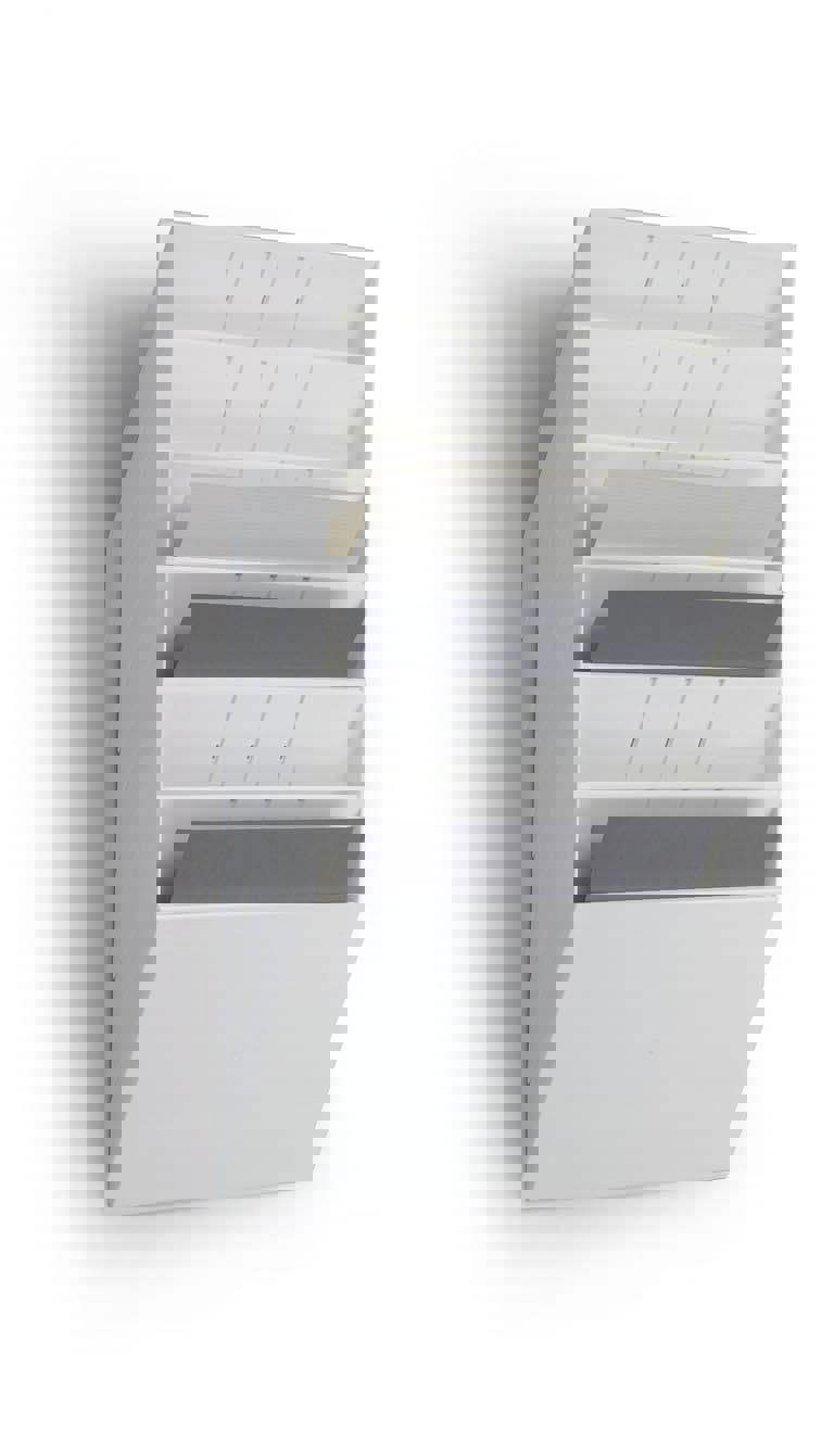 Keep A4 landscape documents neatly displayed and accessible with the Durable FLEXIBOXX Wall Mounted Literature Tray in white. Featuring 6 modular trays, this unit is perfect for storing brochures, leaflets and files in landscape orientation for quick access and professional presentation.