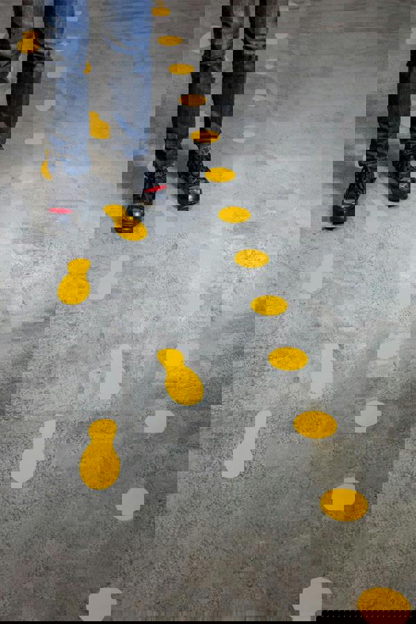 A range of permanent adhesive indoor floor marking shapes perfect for indicating dangerous areas, storage spaces, walkways, etc.