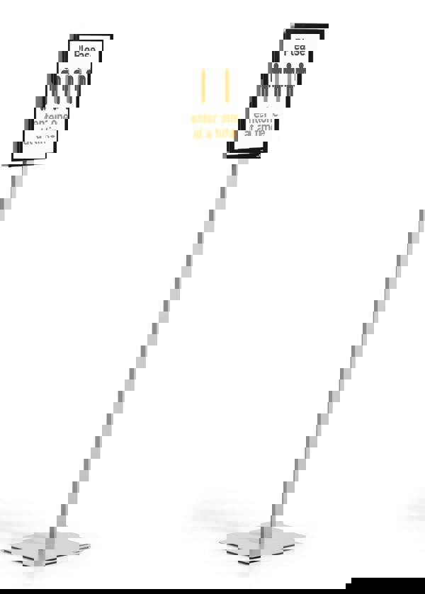 The stand is extremely stable thanks to the high-quality frame and weighted base with non-slip rubber feet. The innovative lock-in mechanism enables you to quickly change from portrait to landscape orientations without tools. The floor stands are perfect for reception areas, exhibitions, lobbies and waiting rooms, etc.