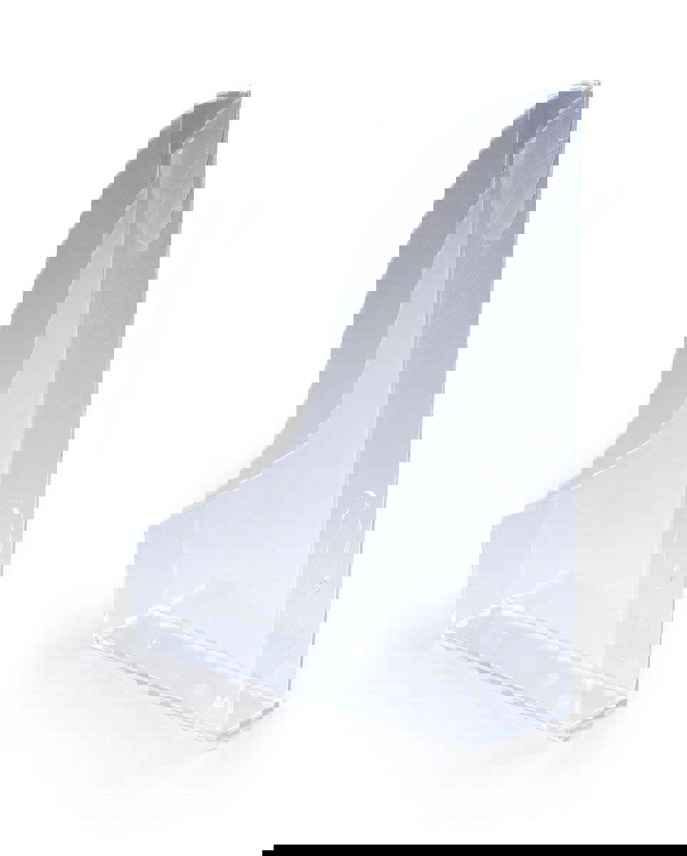 Add visibility and style to your workspace with our Durable A4 magazine racks in clear, designed to securely store documents, magazines, and brochures while keeping contents easy to identify. The high-gloss clear finish fits seamlessly into modern interiors, while the angled opening and grip hole allow easy document retrieval.