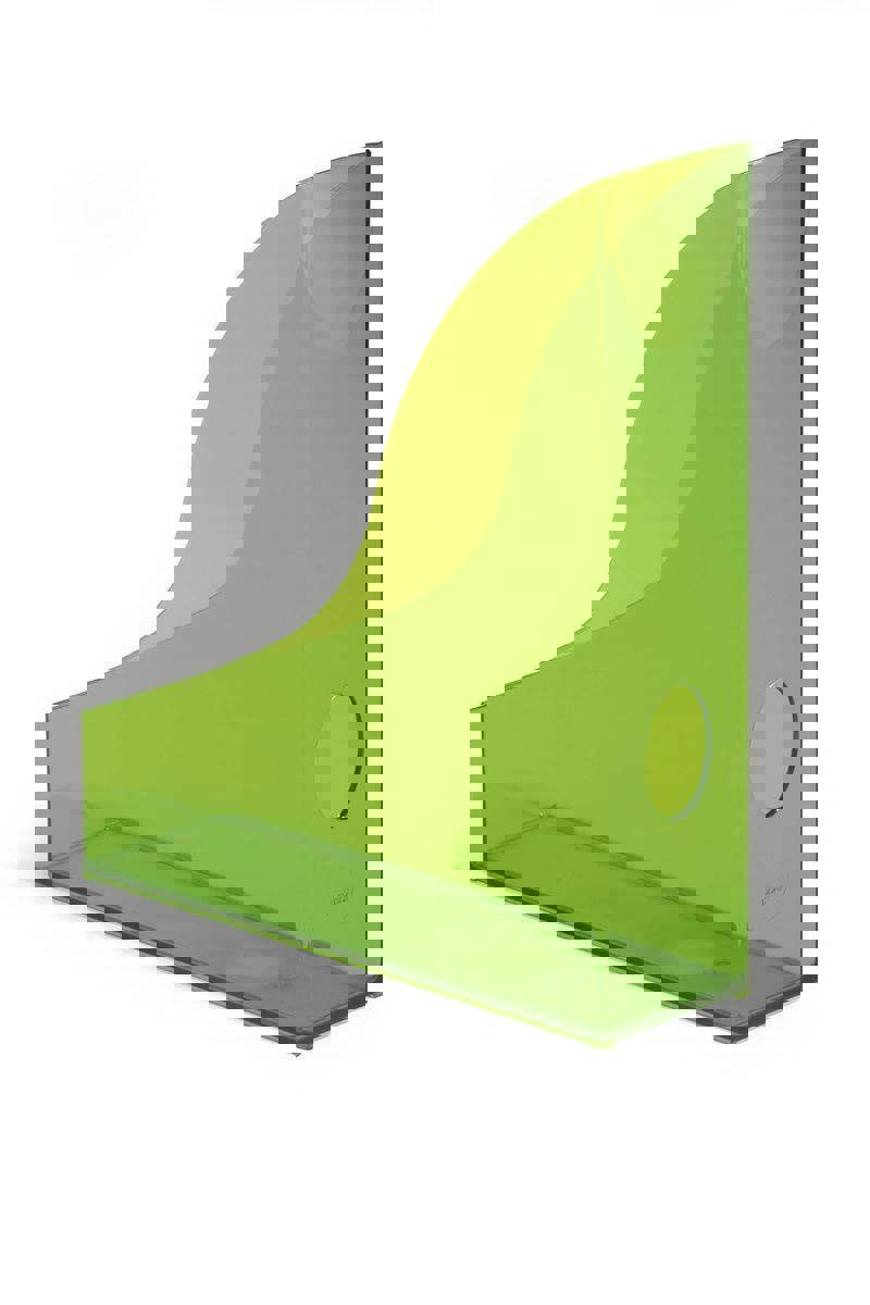 Add visibility and style to your workspace with our Durable A4 magazine racks in clear green, designed to securely store documents, magazines, and brochures while keeping contents easy to identify. The high-gloss clear finish fits seamlessly into modern interiors, while the angled opening and grip hole allow easy document retrieval.