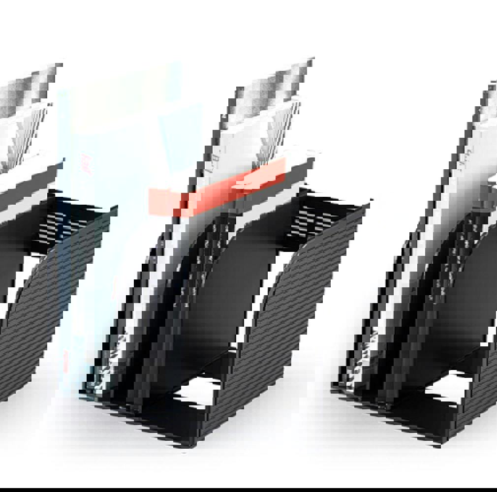 Durable’s OPTIMO magazine stand is a modern book and magazine stand with adjustable compartments saving space and helping organisation. The open sided design not only makes accessing files easier but means there are no width limitations.