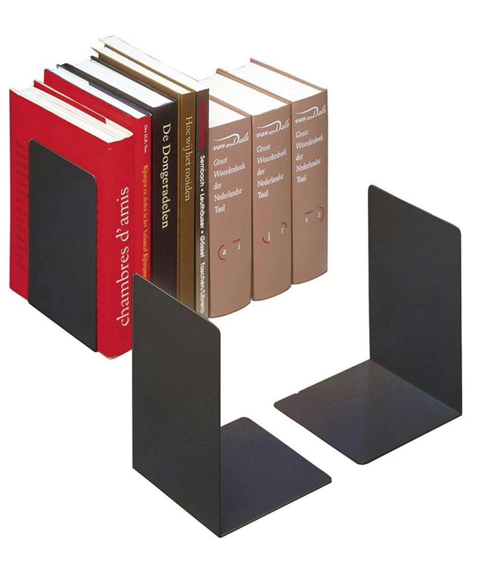 Durable bookends are made from high quality steel with a smooth epoxy powder coated finish for a premium feel. The minimalist german design features a low profile L shape that takes up less space on your shelfs than T shape alternatives.