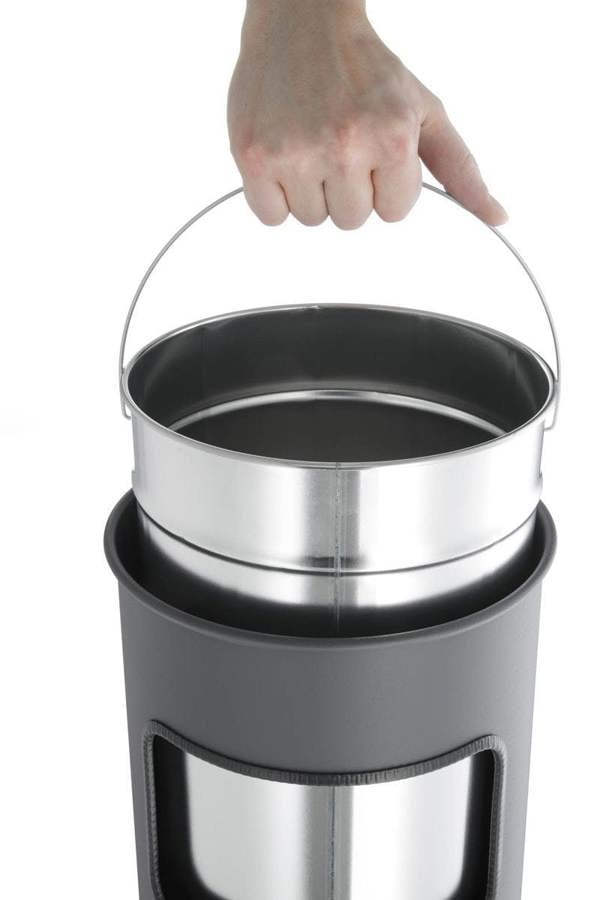 Made from powder-coated metal, the bin is both stylish and durable, making it suitable for indoor and sheltered outdoor use. The removable aluminium ashtray insert and inner waste bin make emptying and cleaning simple, while the included silver sand helps keep the ashtray tidy and functional.