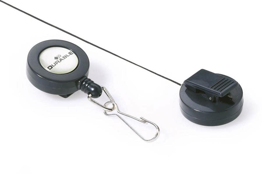 Modern German-designed badge reel with snap hook fastener compatible with all punched hole Durable name badges. The reel features a secure clip on the reverse for attaching to pockets or belts. Perfect for workplaces with high levels of security.