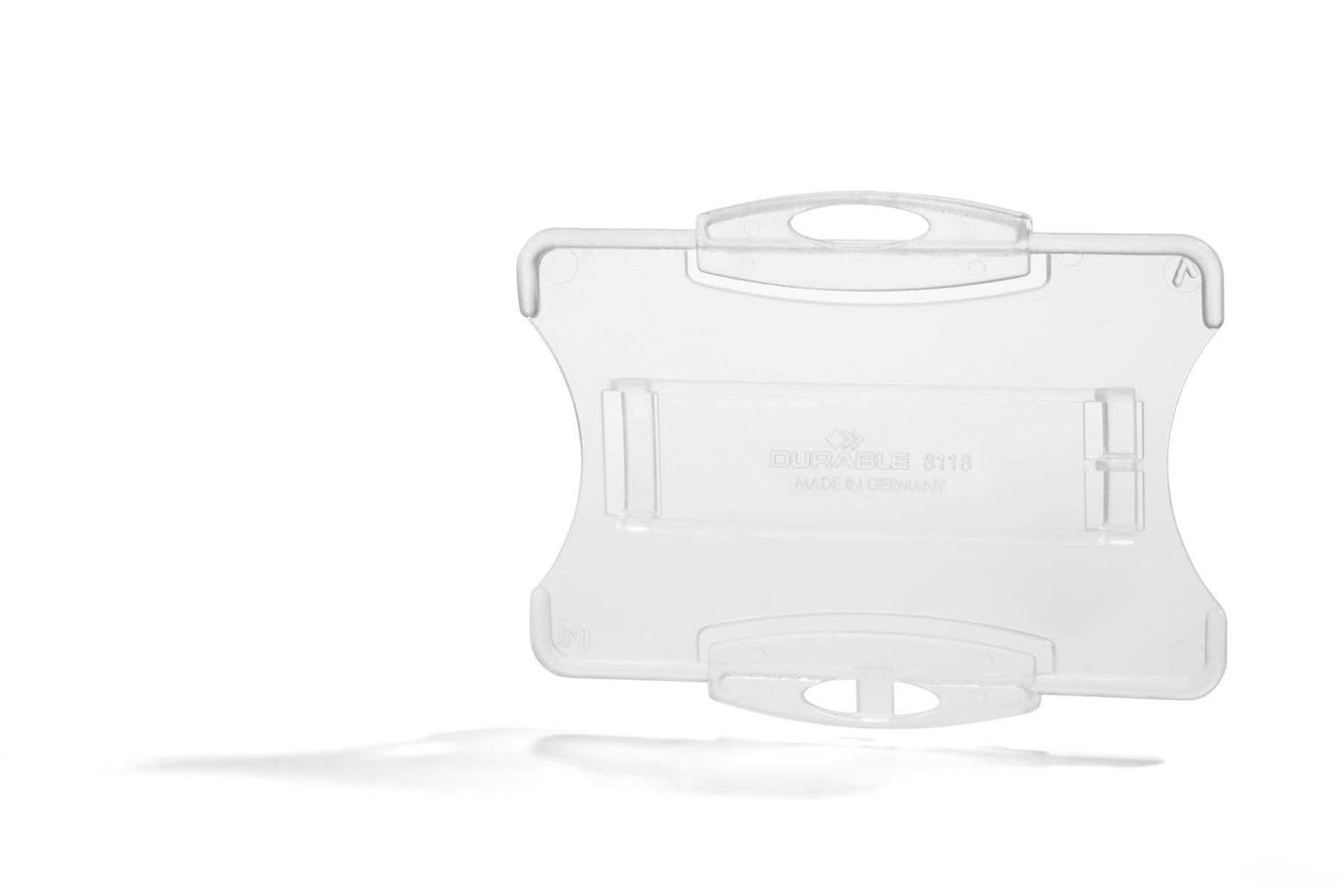 They feature secure portrait and landscape fastenings for lanyards, chains and badge reels.