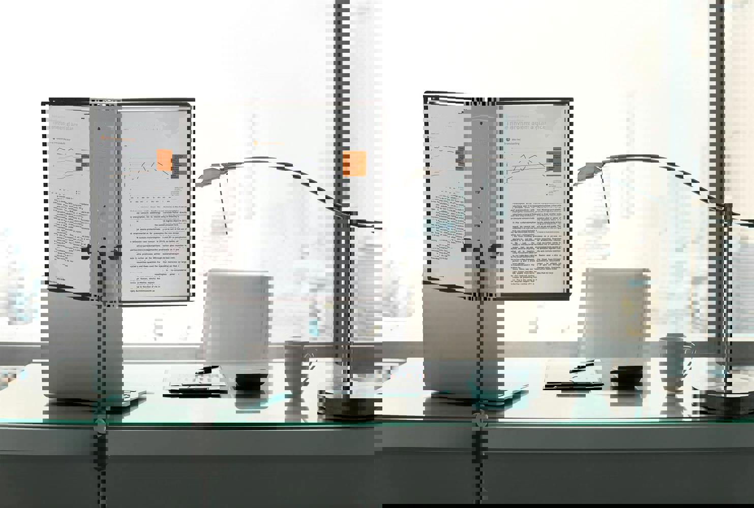 Complete set consisting of a desk clamp and 10 Black A4 polypropylene display panels. The desk clamp length is adjustable up to 78 cm and can be secured to desk and table tops with a thickness of up to 50mm. The reading angle is also variable between 5 and 90°.