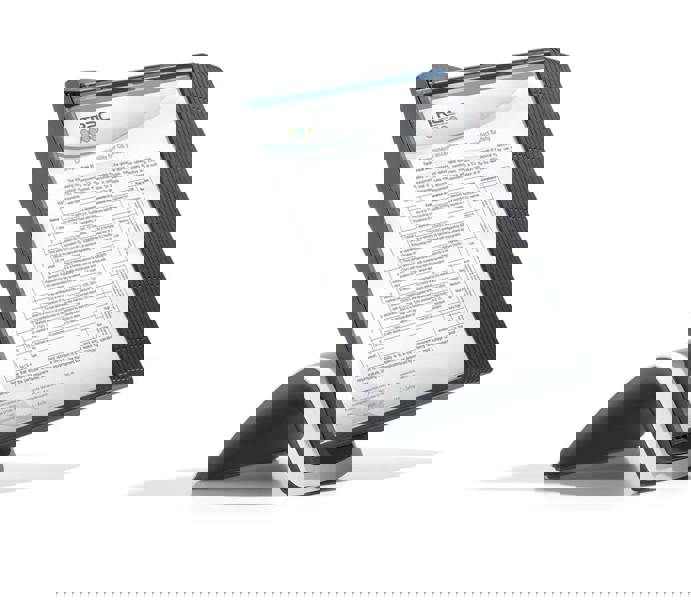 Stylish contoured table stand with 10 SHERPA® PANEL display panels in A4 format (10 panels in Black). Ideal for office use and for all users who want to change information regularly or have important documents stored close to hand. All Sherpa® units come with a 5 Year Guarantee.