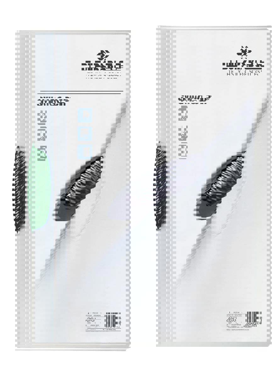 The Durable SWINGCLIP® is made of translucent anti-glare, anti-tear polypropylene, one file is capable of securely holding and protecting 1-30 sheets of A4 paper.