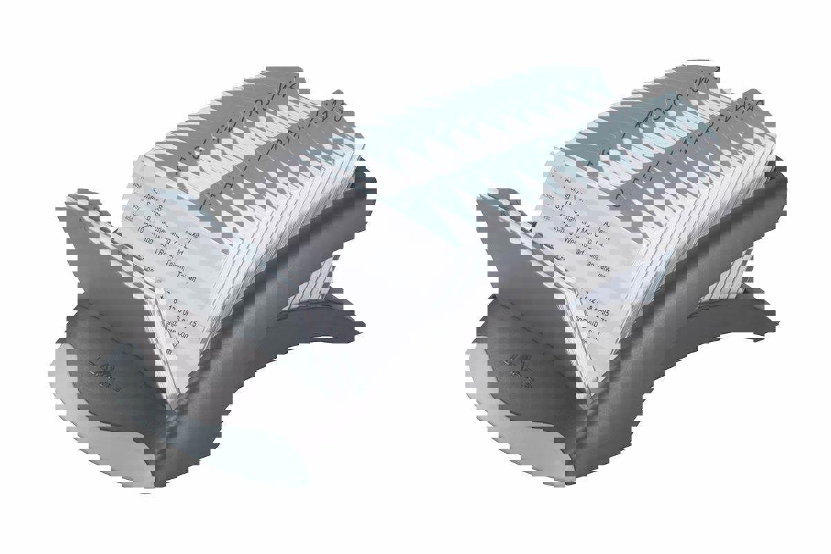 The TELINDEX® DESK VEGAS is a stylish and high quality desktop address index with 500 double sided address cards and a 25 part A-Z index. Perfect for keeping important contact information organised and close to hand.
