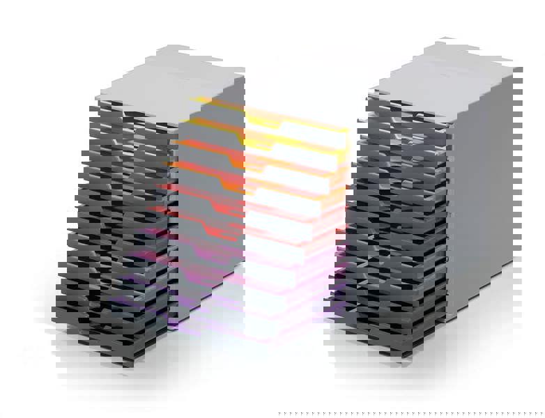 Durable’s contemporary VARICOLOR® drawer box is made of premium-quality plastics with 10 silent smooth-operating drawers. Say goodbye to large filing cabinets and enhance your organisation with colour coloured draws giving you more space for the things you love.