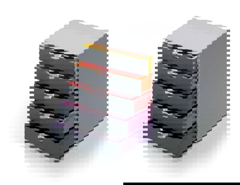 Durable’s contemporary VARICOLOR® drawer box is made of premium-quality plastics with 5 silent smooth-operating drawers. Say goodbye to large filing cabinets and enhance your organisation with colour coloured draws giving you more space for the things you love.