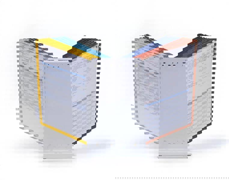 The DURABLE VARIO® range is a robust and economical display panel system with a sturdy metal base. Ideal for use in industrial areas and offices. This desk unit includes 20 A4 display panels and tabs.