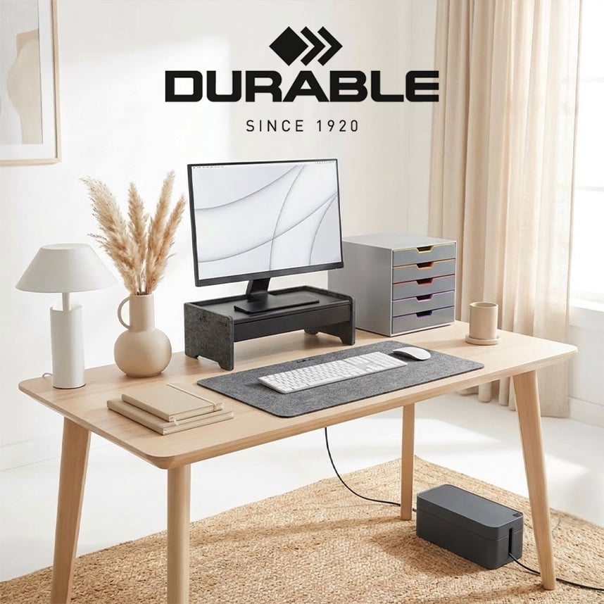 Founded in Germany in 1920, DURABLE is driven by a clear vision to create intelligent solutions that make everyday work more efficient, organised and safe. With over a century of expertise and a deep understanding of how we work, the brand brings together German engineering, thoughtful design and practical innovation.