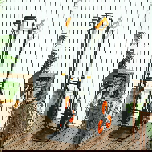 Designed for moving multiple boxes and heavier loads, this DURHAND sack barrow trolley saves you time and effort. Made from steel for strength and support, it has a tall design that holds items up to 100 cm high, with two extended back plates and a textured skid chassis to prevent falls. The two easy-grip handles provide comfort, while the unique three-cluster wheel design on each side ensures smooth transport across various surfaces—great for both home and work environments.