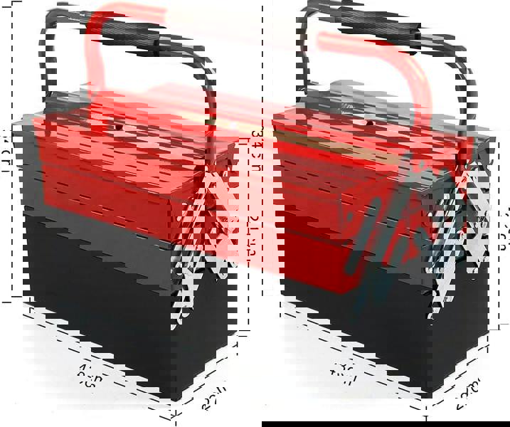 This metal cantilever tool box offers organised and accessible storage for tools and accessories. With a three-tier structure and five trays, it opens smoothly to display contents clearly, saving time during use. Made from durable cold-rolled steel with a powder-coated finish, it resists scratches and corrosion while providing reliable protection for your tools. A sturdy carry handle makes it portable, ideal for workshops, home storage, DIY projects, and professional maintenance tasks.