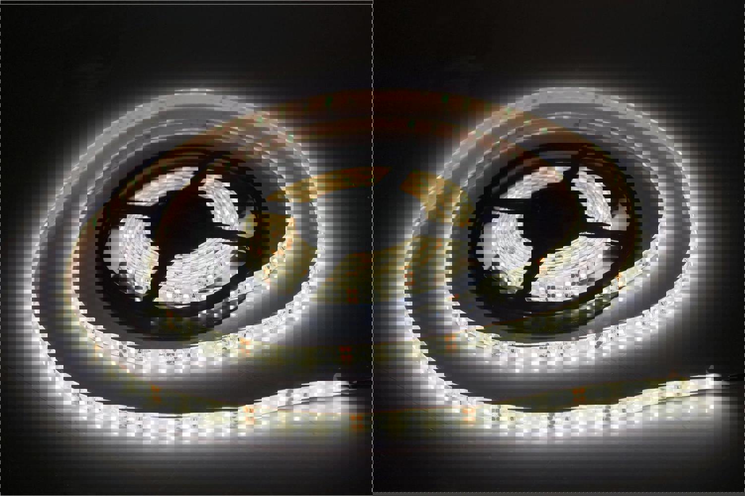 High Quality Plug and Play IP65 rated LED tape light with 60 LEDs per metre. Covered in epoxy resin to protect the LED s the depth is just 2. 5 mm and at 8 mm wide the tape will fit easily into many locations. Supplied on a 5 metre reel with a self-adhesive back, this tape is easily applied to most smooth surfaces by simply removing the backing paper. The tape can be easily cut or joined, with cutting points at every 3rd LED (5 cm) intervals. Highly flexible and versatile with a low power consumption the tape is ideal for many uses such as drative lighting in homes, vehicles, shops, bars, nightclubs. As the tape itself (only) is waterproof it is ideal for use in kitchens and covered outdoor applications. Included in the kit is a (12V) In Line Power Supply.