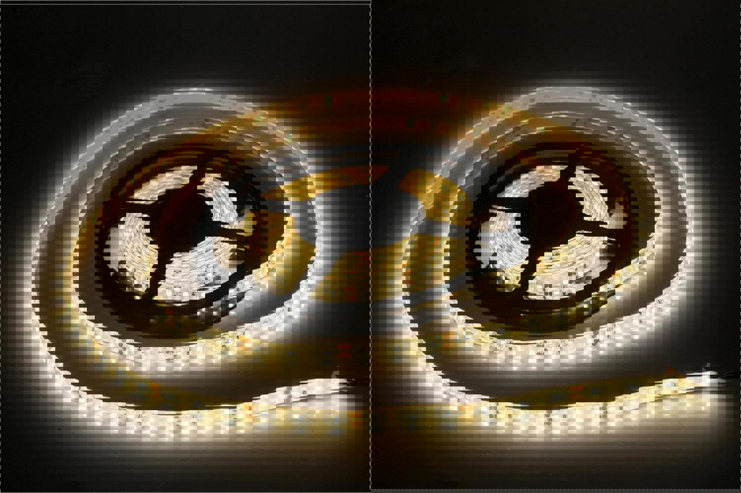 High Quality Plug and Play IP65 rated LED tape light with 60 LEDs per metre. Covered in epoxy resin to protect the LED s the depth is just 2. 5 mm and at 8 mm wide the tape will fit easily into many locations. Supplied on a 5 metre reel with a self-adhesive back, this tape is easily applied to most smooth surfaces by simply removing the backing paper. The tape can be easily cut or joined, with cutting points at every 3rd LED (5 cm) intervals. Highly flexible and versatile with a low power consumption the tape is ideal for many uses such as drative lighting in homes, vehicles, shops, bars, nightclubs. As the tape itself (only) is waterproof it is ideal for use in kitchens and covered outdoor applications. Included in the kit is a (12V) In Line Power Supply.