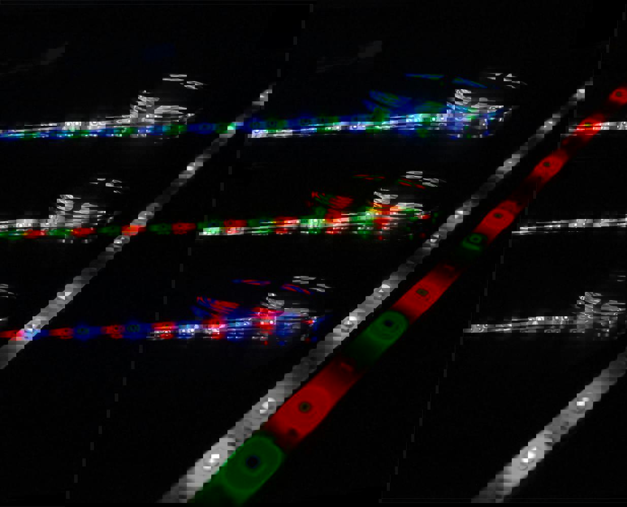 Highly Flexible IP65 rated chasing LED tape light with 20 Blue, 20 Green, 20 Red LEDs per metre. The tape is extremely thin with an epoxy resin coating to protect the LEDs. With a depth of just 2. 5 mm and 8 mm wide it will fit into many unusual places. Supplied on a 5 m reel with a self adhesive back, this tape is easily applied to most smooth surfaces by simply removing the backing paper. The tape can be cut or joined, with cutting points at every 9 LED (3B-3G-3R) 150 mm intervals. The tape is highly flexible and has a low power consumption making it ideal for many uses such as homes, vehicles, shops, bars and nightclubs. A power supply and controller are required, we recommend the P003C (PSU) and G009ZZ (controller) which must be purchased separately. Also Available as a kit ref G009ZVR. (Please note this is not colour mixing tape)