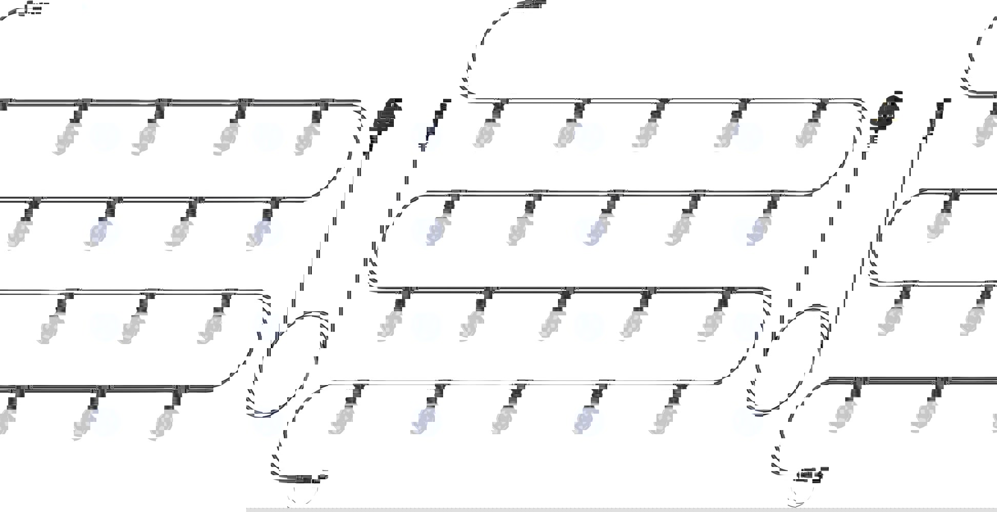 The 5m lengths are equipped with options for 10 or 15 lamp sockets, while the 10m lengths offer the choice between 10 or 20 lamp sockets. This allows for easy customization, enabling you to select the number of bulb sockets that best meets your requirements.