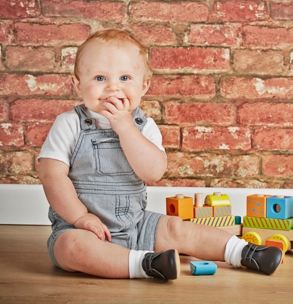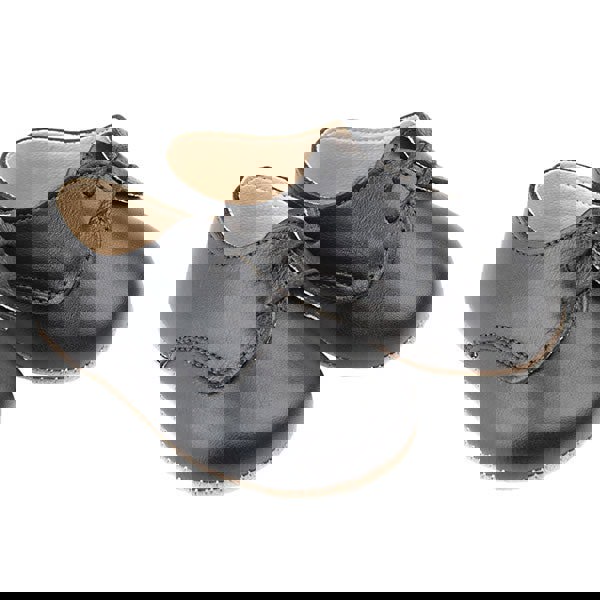 Black pre-walker lace up shoes suitable for baby boys and girls. They are made in soft leather with a sole made in soft yet durable synthetic suede, ideal for indoor use. .
