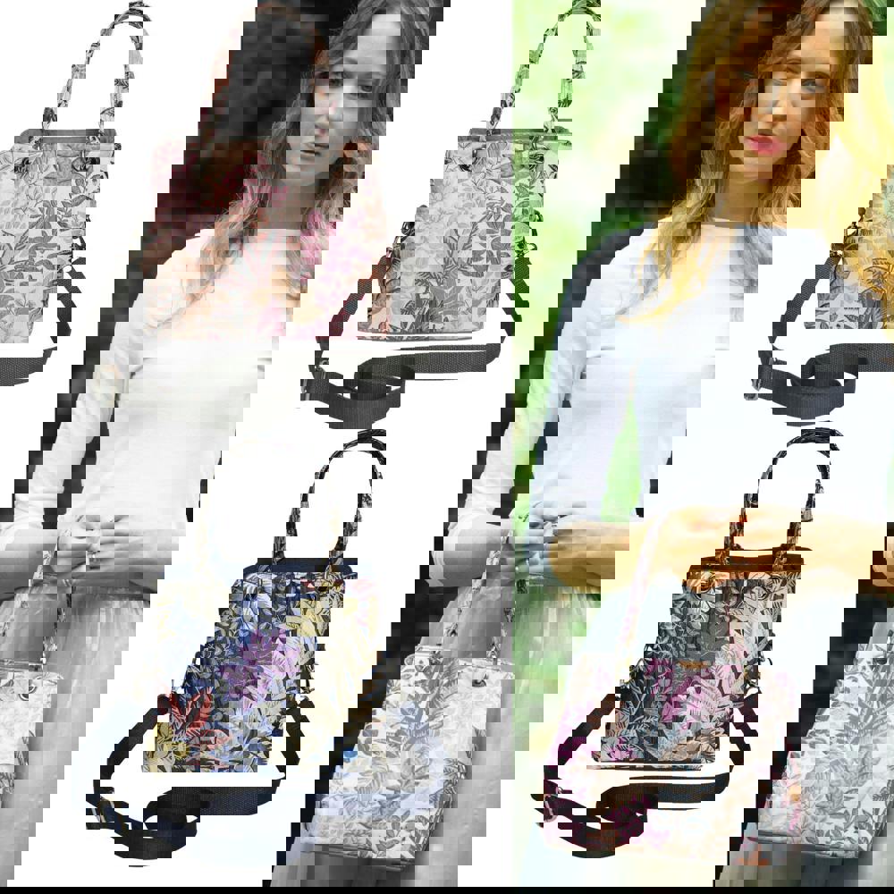Elegant and versatile, the Spring Jacquard Camille Bag is designed to transition effortlessly from day to evening. Featuring a beautifully woven leaf-pattern jacquard fabric, this structured handbag adds a refined finish to both casual and occasion looks.