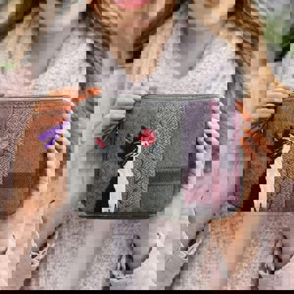 Add a charming countryside touch to your everyday accessories with the Earth Squared Tweed Appliqué Coin Purse. Crafted from a mix of textured patchwork tweed fabrics, this compact purse features beautifully detailed appliqué and embroidery designs inspired by nature and animals.