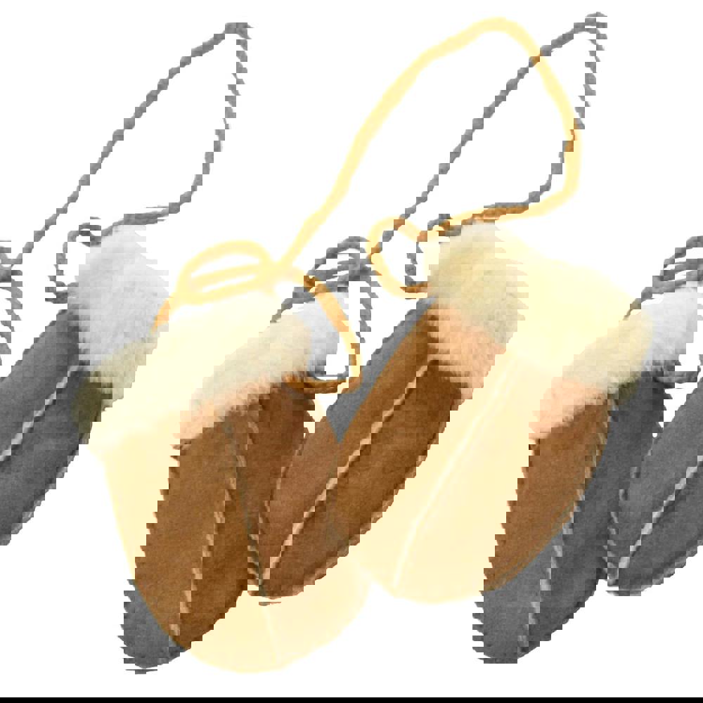 These baby mittens from Eastern Counties Leather are hand sewn from sheepskin in a chestnut colour. An attached cord helps keep the pair together, reducing the chance of them being misplaced.