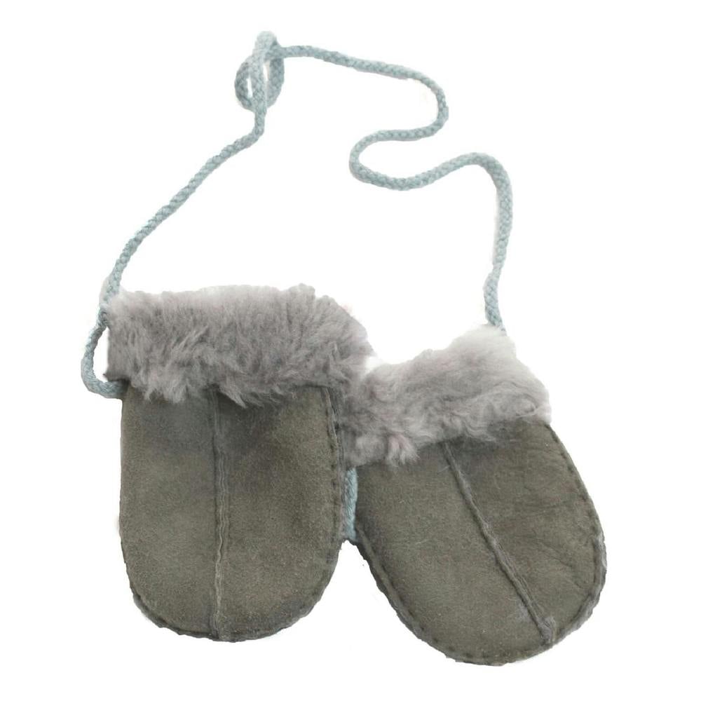 These baby mittens from Eastern Counties Leather are hand sewn in sheepskin and finished in a grey colour. An attached cord helps keep the pair together, reducing the chance of them being misplaced.