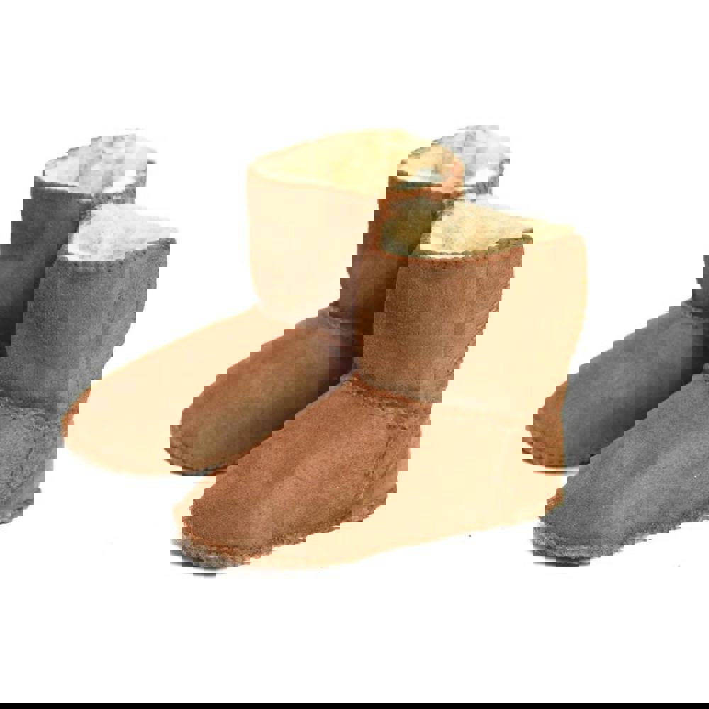 These baby booties are made from real sheepskin and finished in a chestnut colour. A touch tab fastening keeps them secure, while the soft sole provides a gentle feel.
