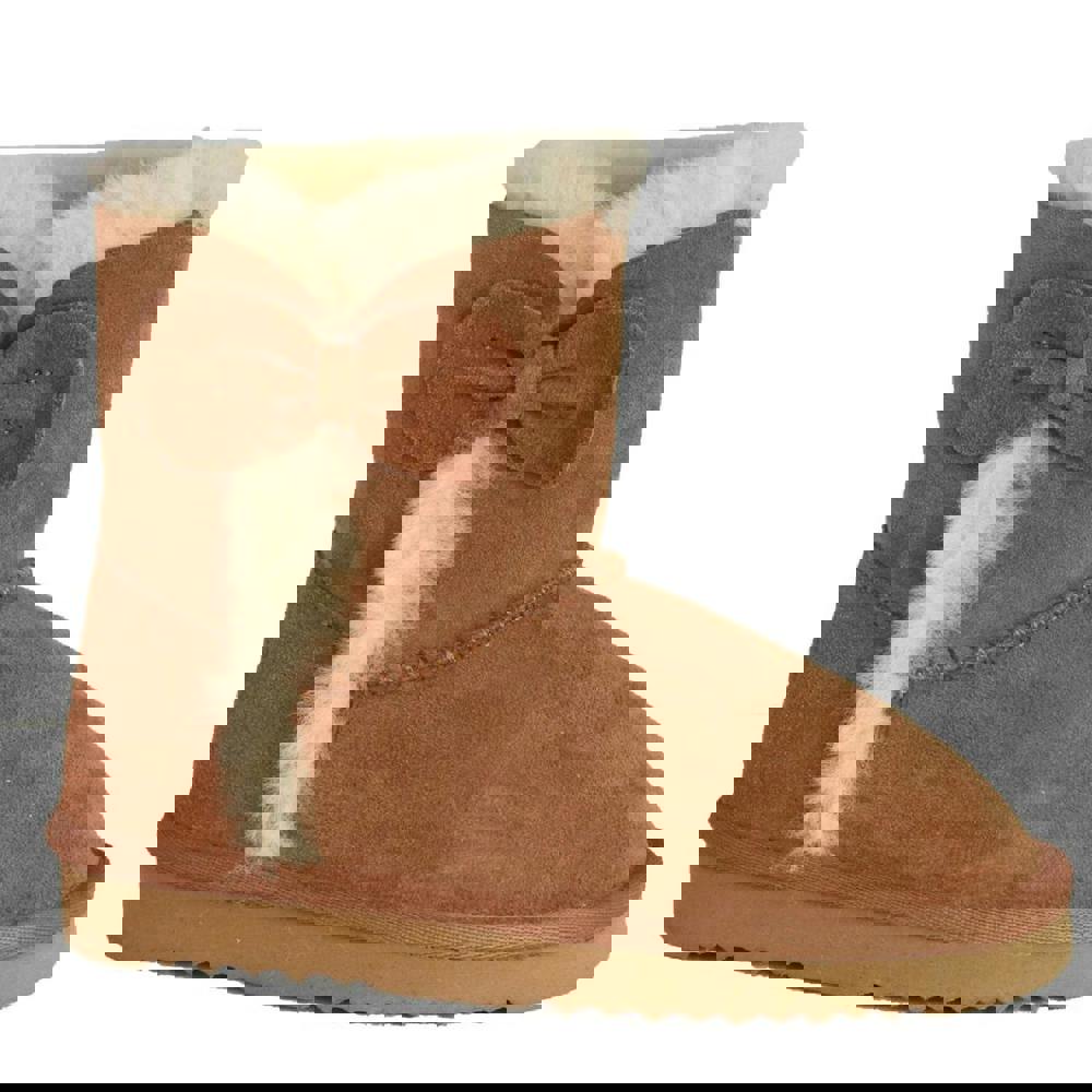 An EVA sole provides a robust, rubber-like feel underfoot, pairing with the soft qualities of sheepskin. The bow detailing sets the look apart while keeping the overall design simple and practical.