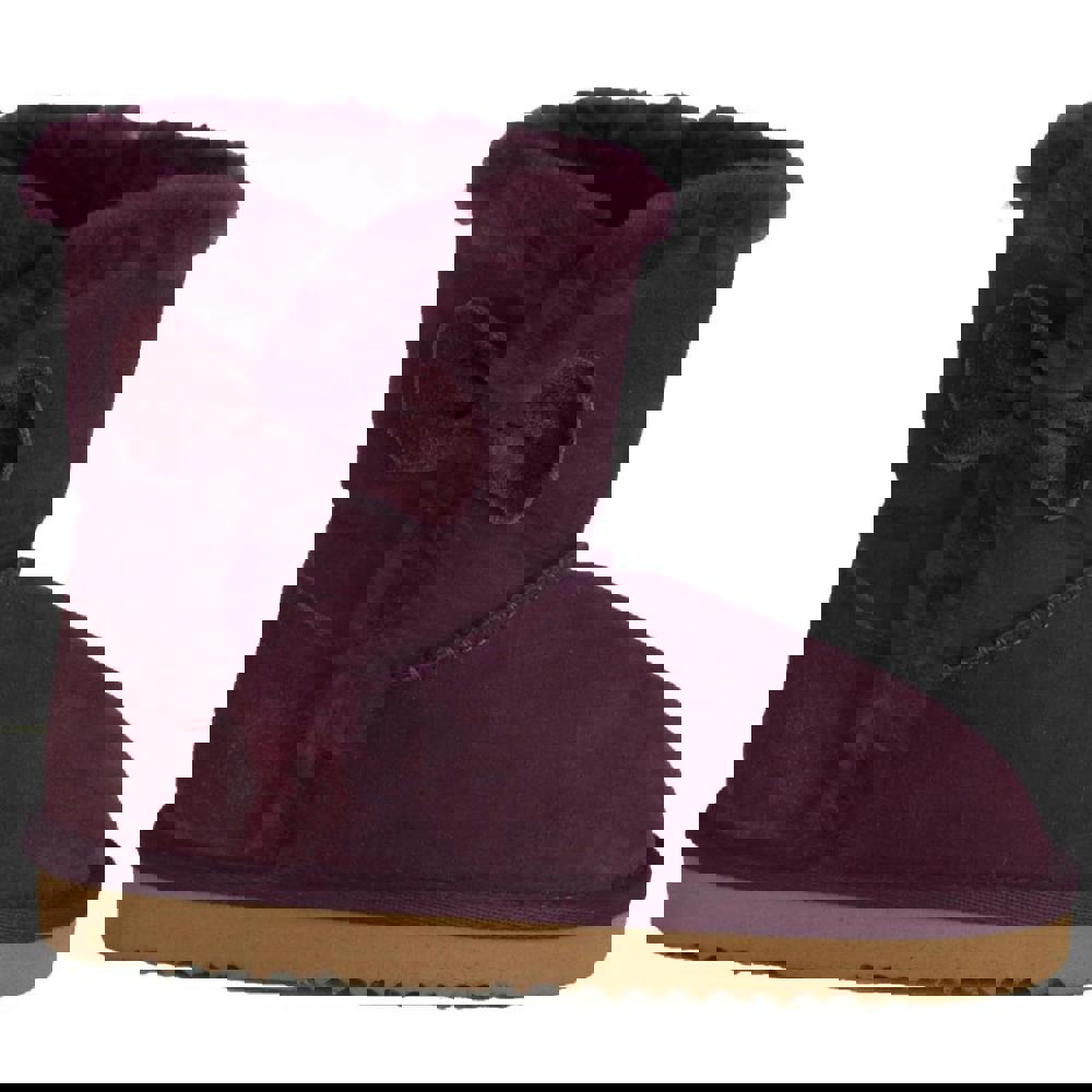 These children’s Coco sheepskin boots from Eastern Counties Leather come in purple with a suede bow detail. A reinforced suede heel adds structure, finished with Royal Ram embossing. An EVA sole completes the design.