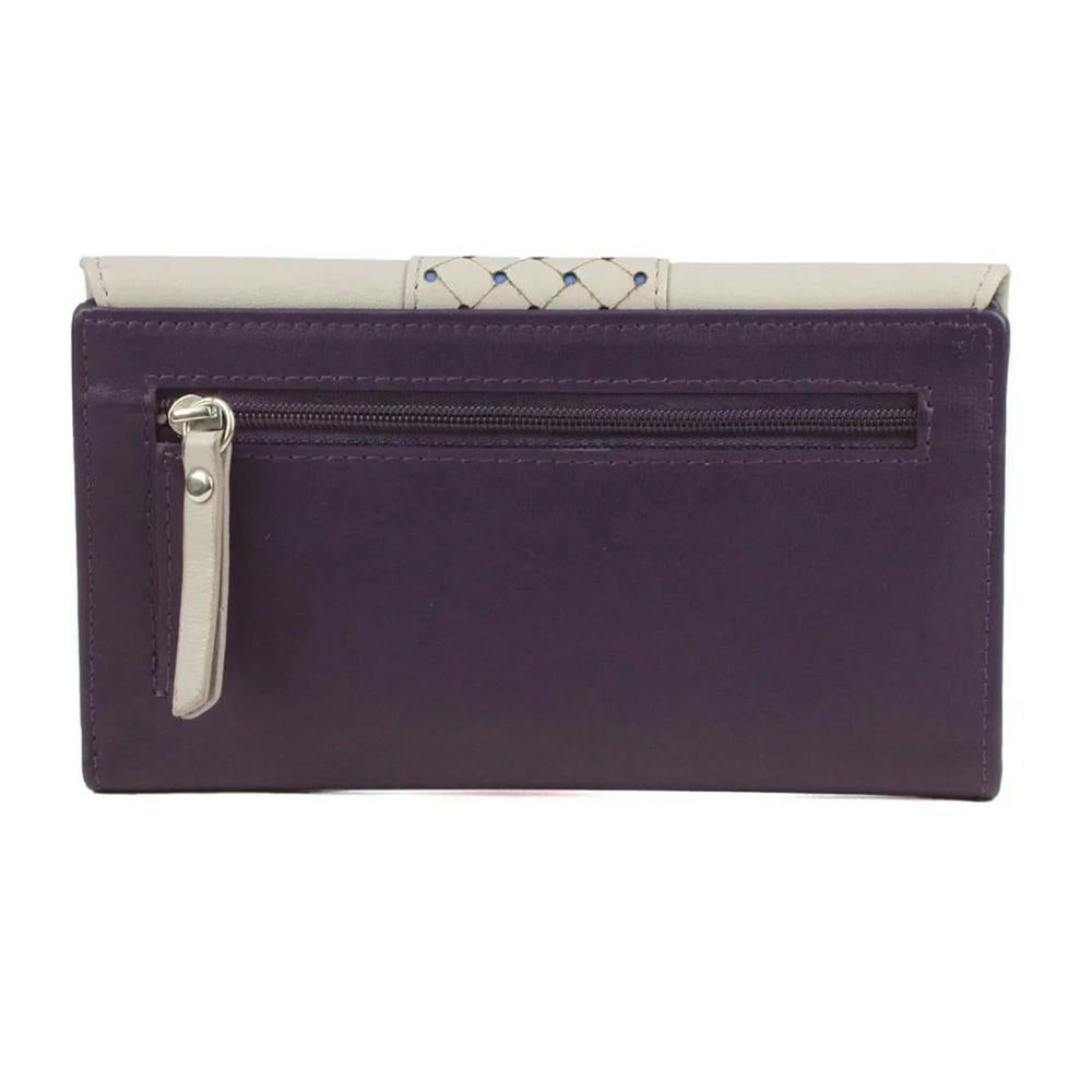 The Eastern Counties Leather Donna Contrast Panel Leather Purse is a compact everyday accessory designed to keep your essentials organised. Finished in purple and ivory, it features a contrast panel design with perforated detailing for a distinctive look.