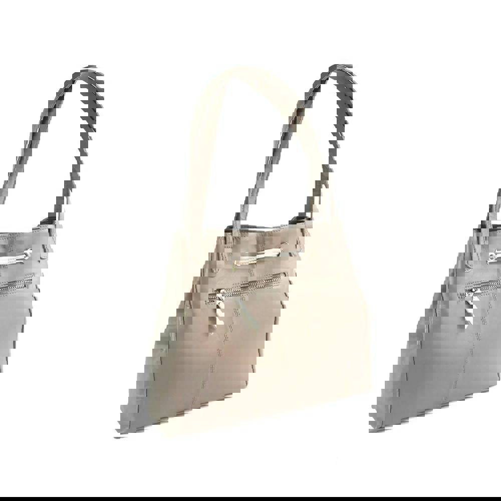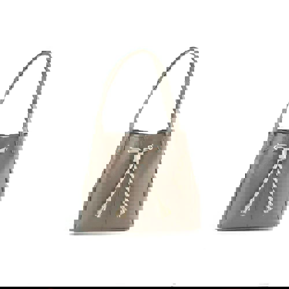 The Eastern Counties Leather Keziah Leather Handbag is a compact style designed to keep everyday essentials organised. Finished in taupe and ivory, it features a contrast drawstring and tassel detail for a considered look, alongside a practical carry handle for easy grab-and-go use.